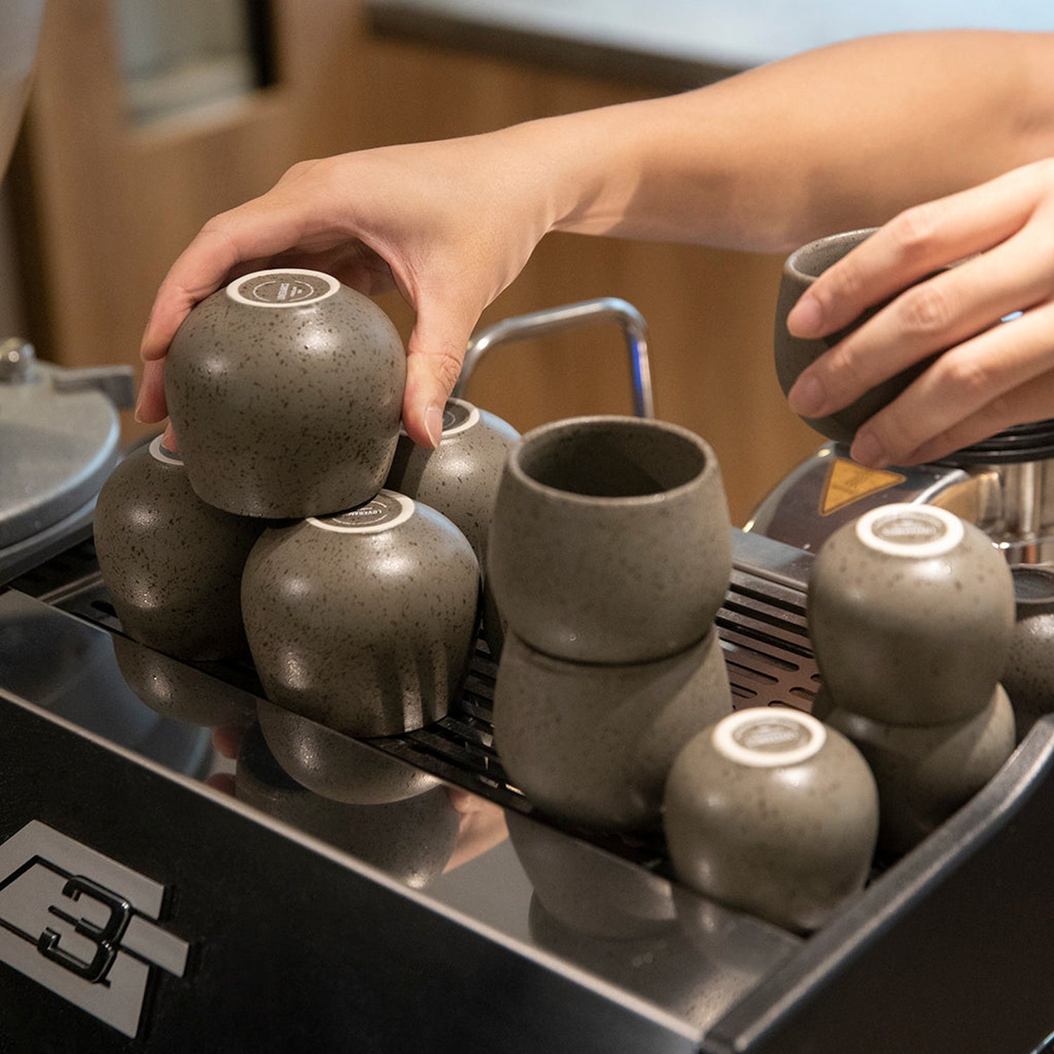 Die Tasse besteht aus hochwertigem Porzellan, das Langlebigkeit und ein angenehmes Gefühl in der Hand garantiert. Ihre natürliche Granitfarbe passt perfekt zur minimalistischen Ästhetik moderner Cafés und stilvoller Kaffeebereiche zu Hause.