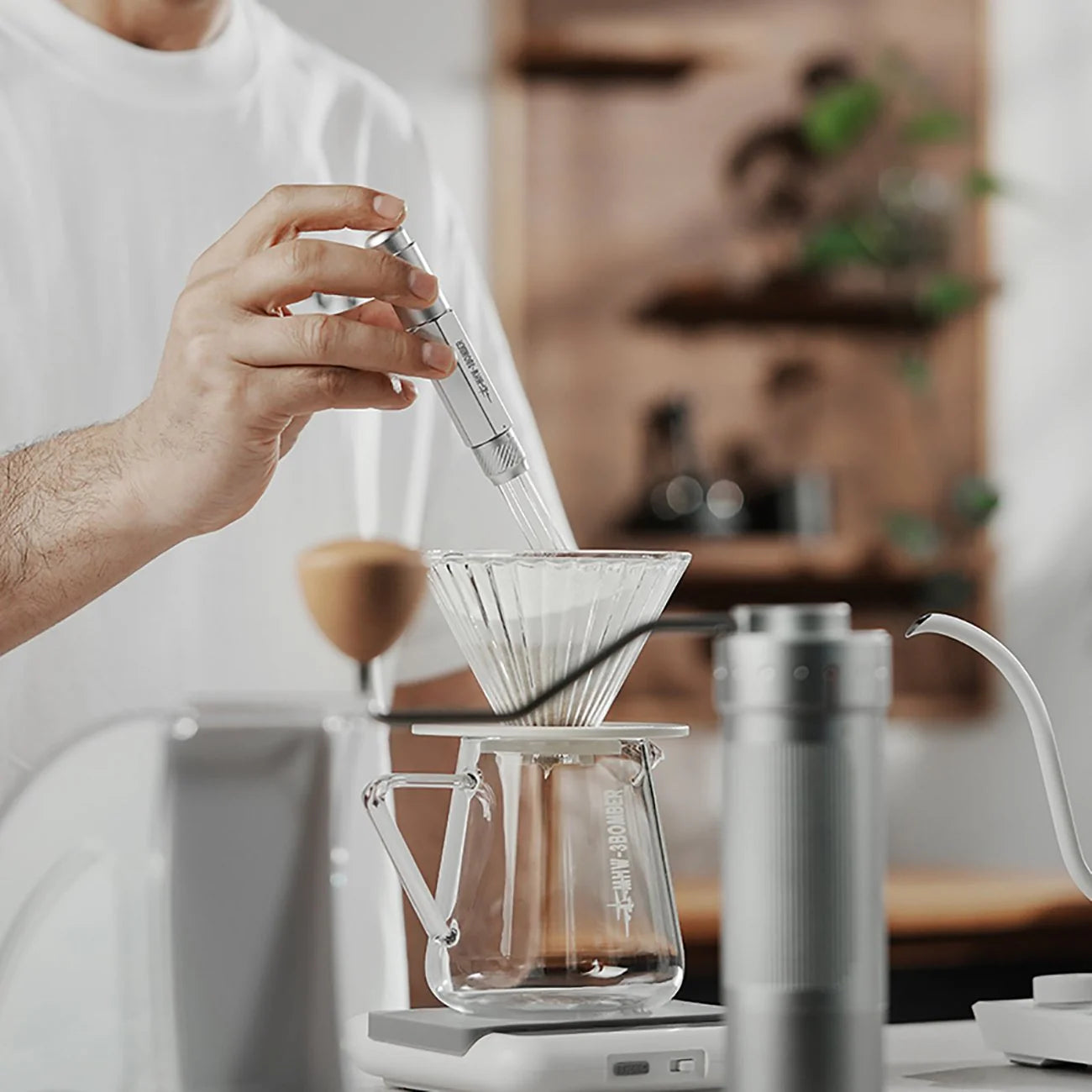 Le Lightning Needle Distributor Pro de la gamme MHW-3BOMBER est un outil WDT avancé destiné à une distribution précise du café moulu dans le porte-filtre, conçu pour une extraction plus homogène et des résultats plus stables en tasse. Son design épuré et fonctionnel en finition Stellar Black offre une esthétique professionnelle et intemporelle, en mettant l’accent sur l’essentiel pour ce type d’accessoire : contrôle, répétabilité et qualité de fabrication. Il convient aussi bien aux amateurs exigeants qu’aux baristas professionnels recherchant une qualité constante pour chaque espresso.