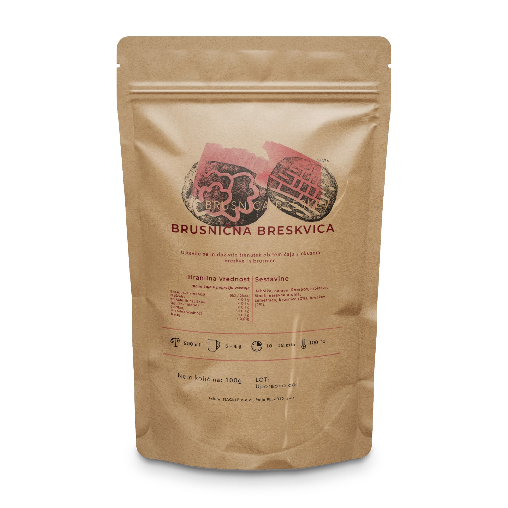 Fermati e vivi il momento con questo tè aromatizzato alla pesca e al mirtillo rosso.