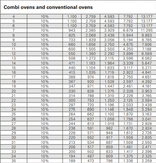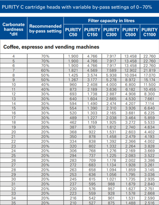 - Filter capacity for ovens and carbonate hardness of water 10 °KH: 4,675