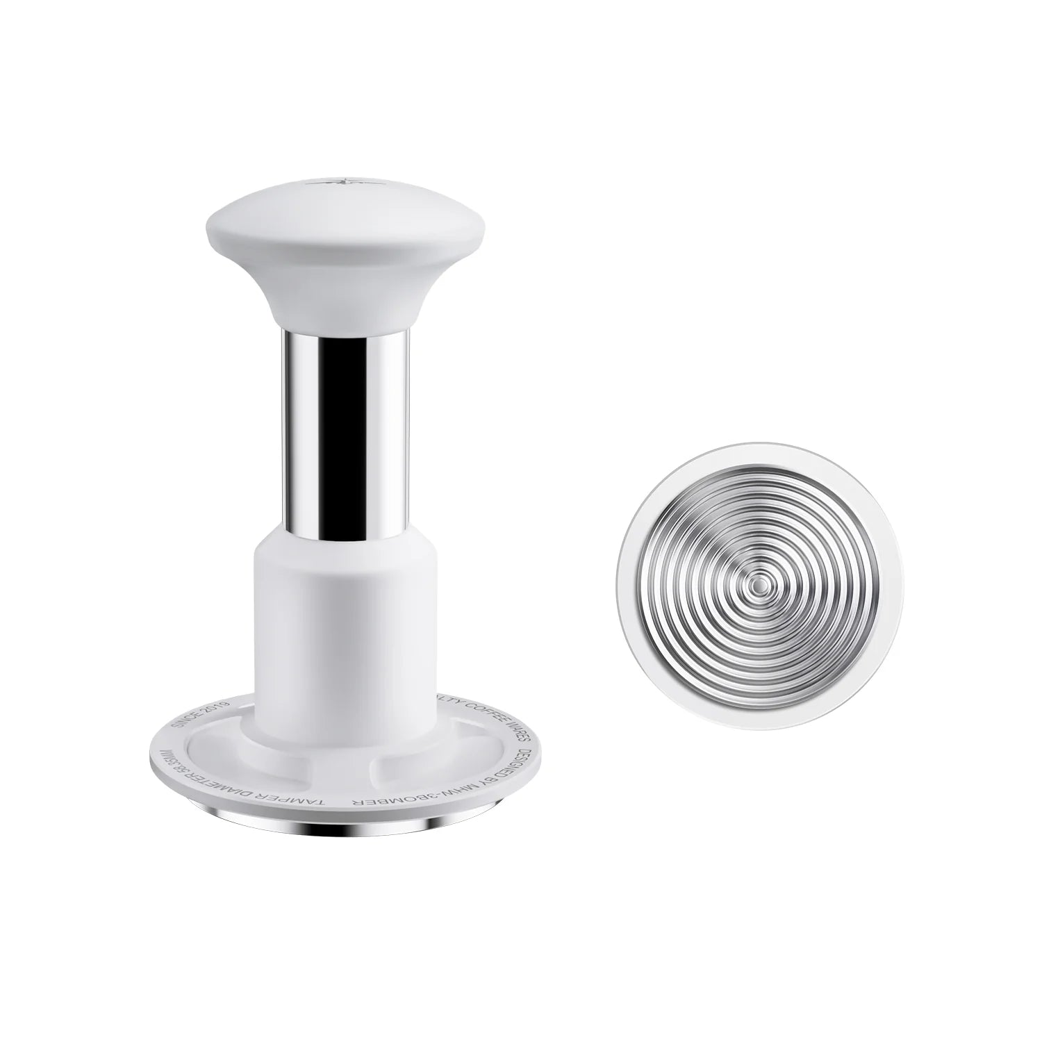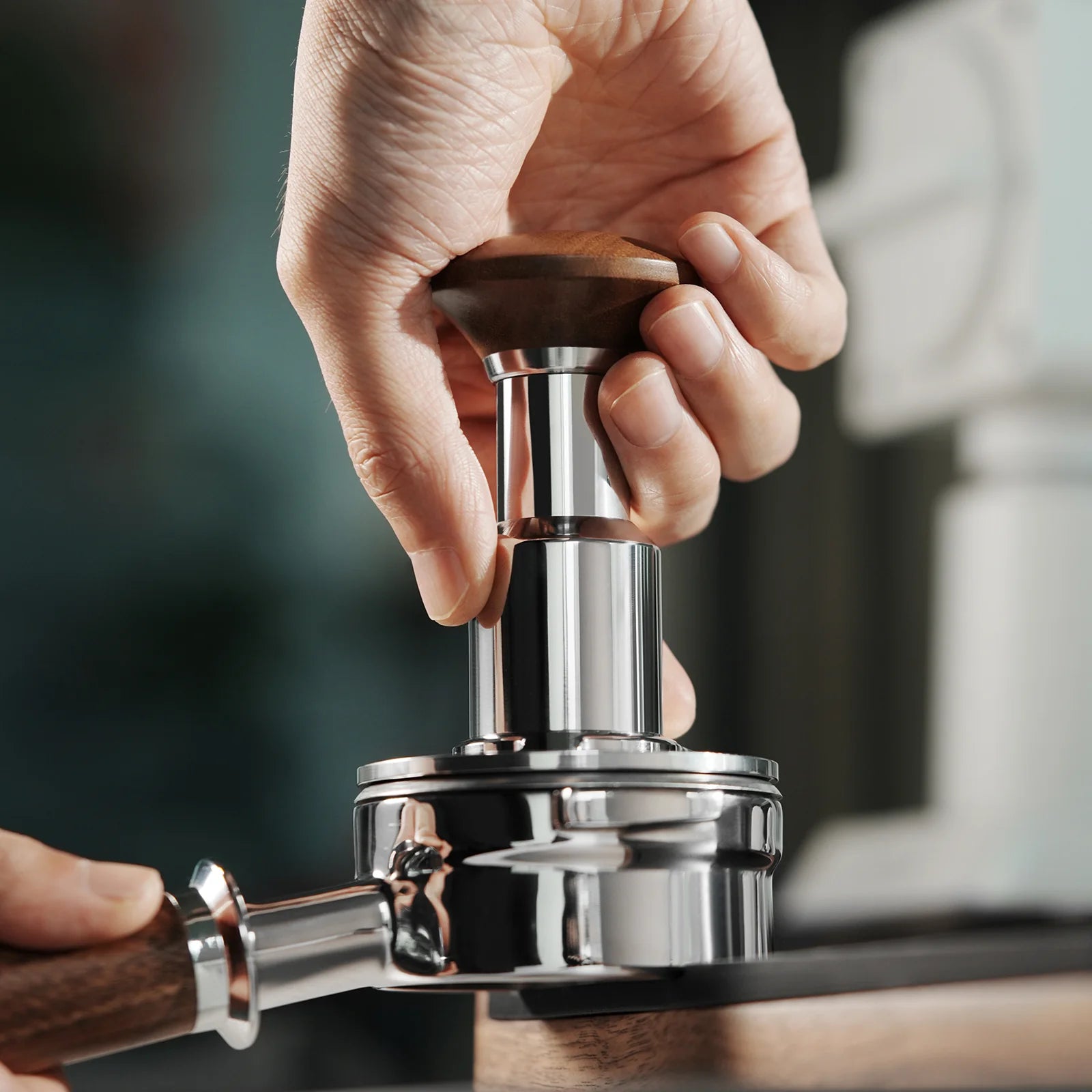 The internal system of four springs optimizes tamping with calibrated pressure and vertical alignment, making it more reliable than with conventional tampers to achieve a uniform coffee layer density. With each press, the tool behaves as if it were performing an ideal tamping curve, with the force being constant and independent of the individual's strength. This means that each press, regardless of the hand technique, is approximately uniform and stable. The ergonomically designed handle is comfortable to use even when preparing several drinks in a row, reducing wrist strain, while horizontal guides help maintain a perfectly flat tamping base.